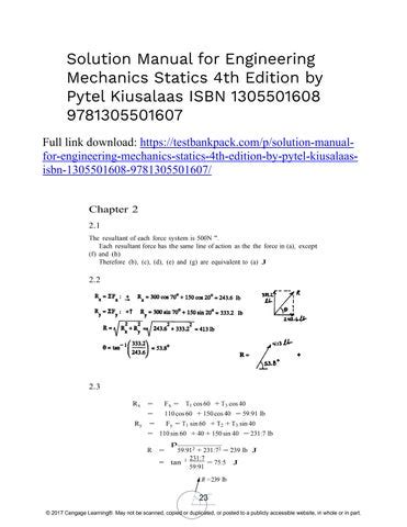 Read engineering mechanics by pytel solution manual answer Doc